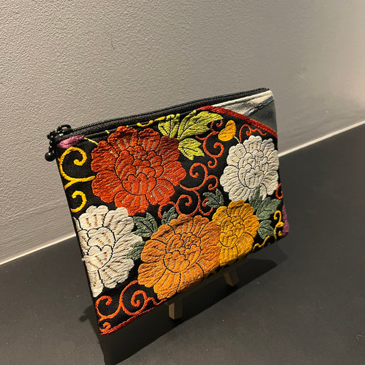 Elegant Black Pouch with Vibrant Peony Design(001-P)