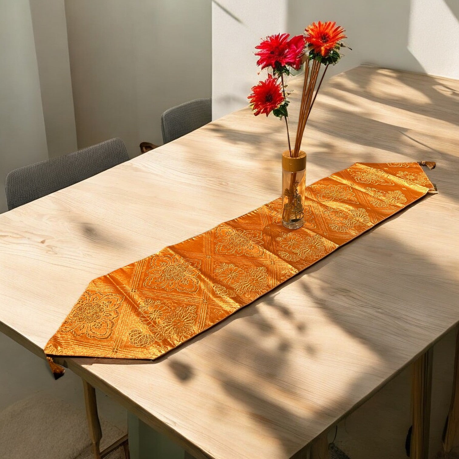 Luxurious Golden Table Runner with Traditional Patterns(005-TR)