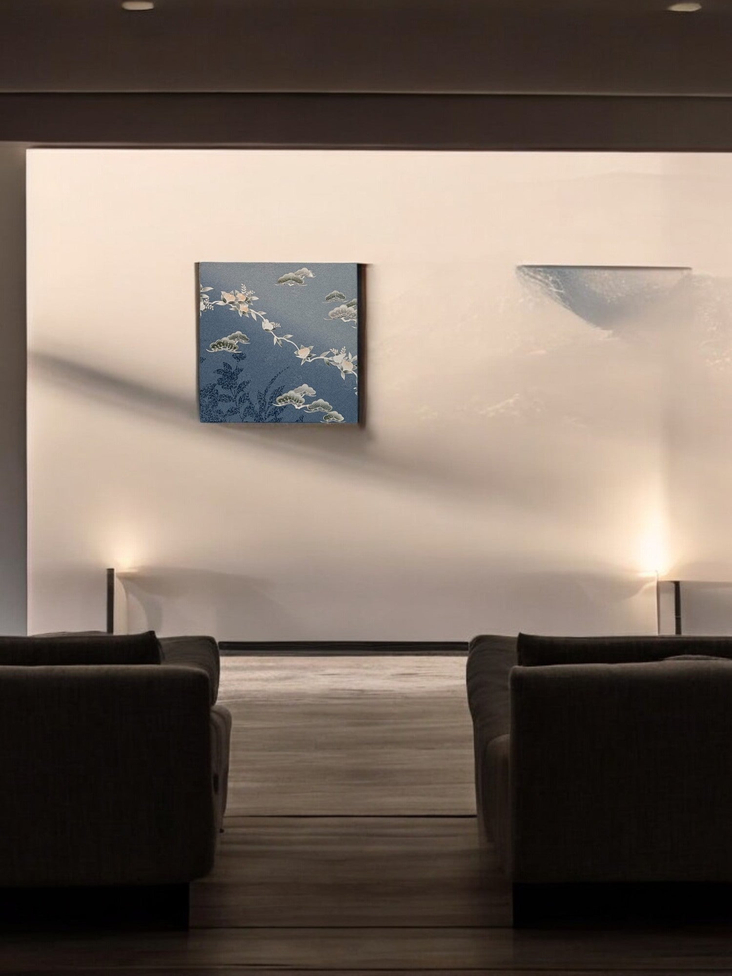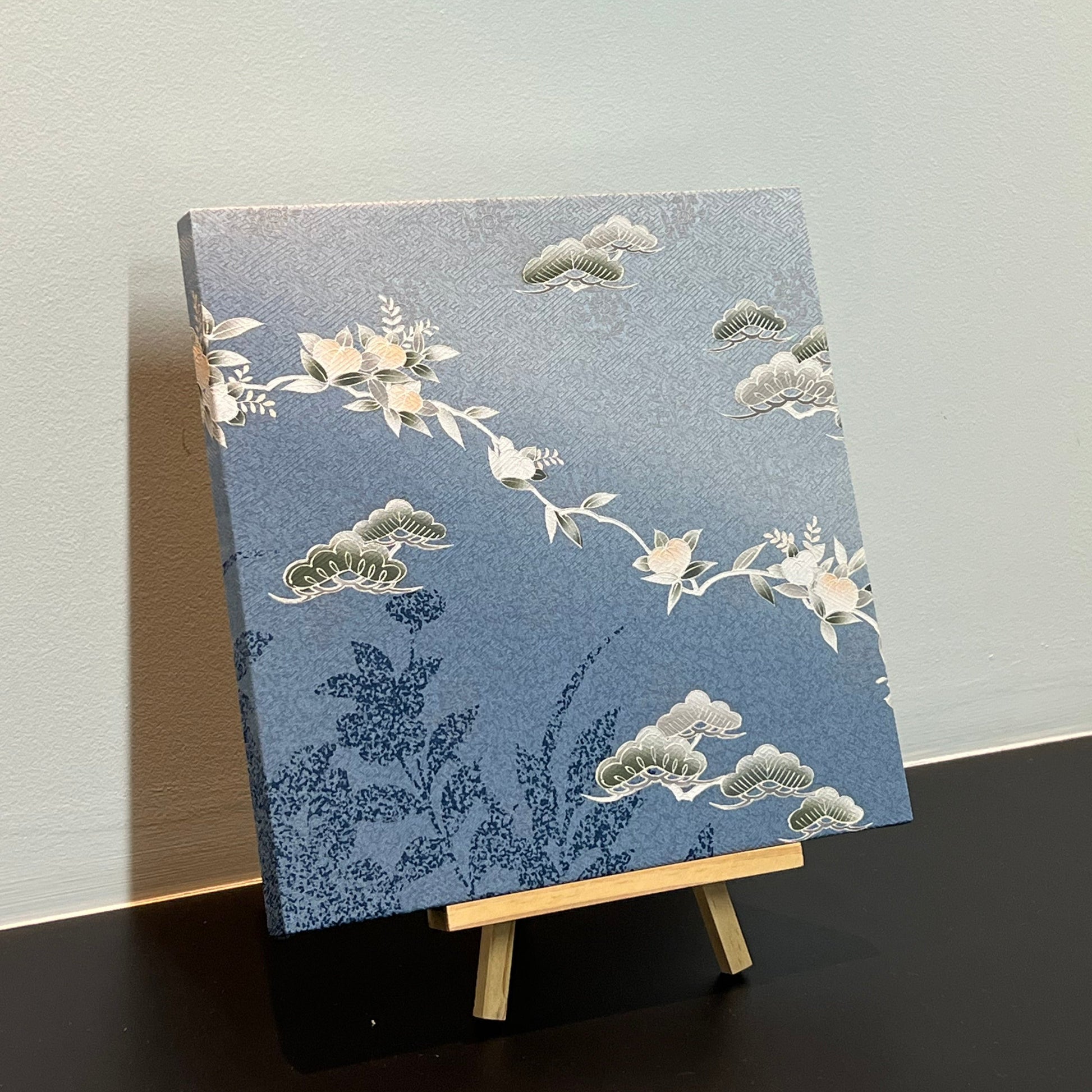 This fabric board is crafted from Nishijin-ori kimono fabric, a traditional textile art from Kyoto, repurposed into a stunning decorative piece. The serene blue background is adorned with elegant white flowers and green trees, evoking the beauty of nature. Its intricate patterns and soft colors bring a sense of tranquility and sophistication to your interior. Perfect for wall hanging or standing display, it seamlessly blends traditional Japanese aesthetics with modern decor. Each piece is meticulously handcrafted, making it a unique and thoughtful gift for any special occasion.