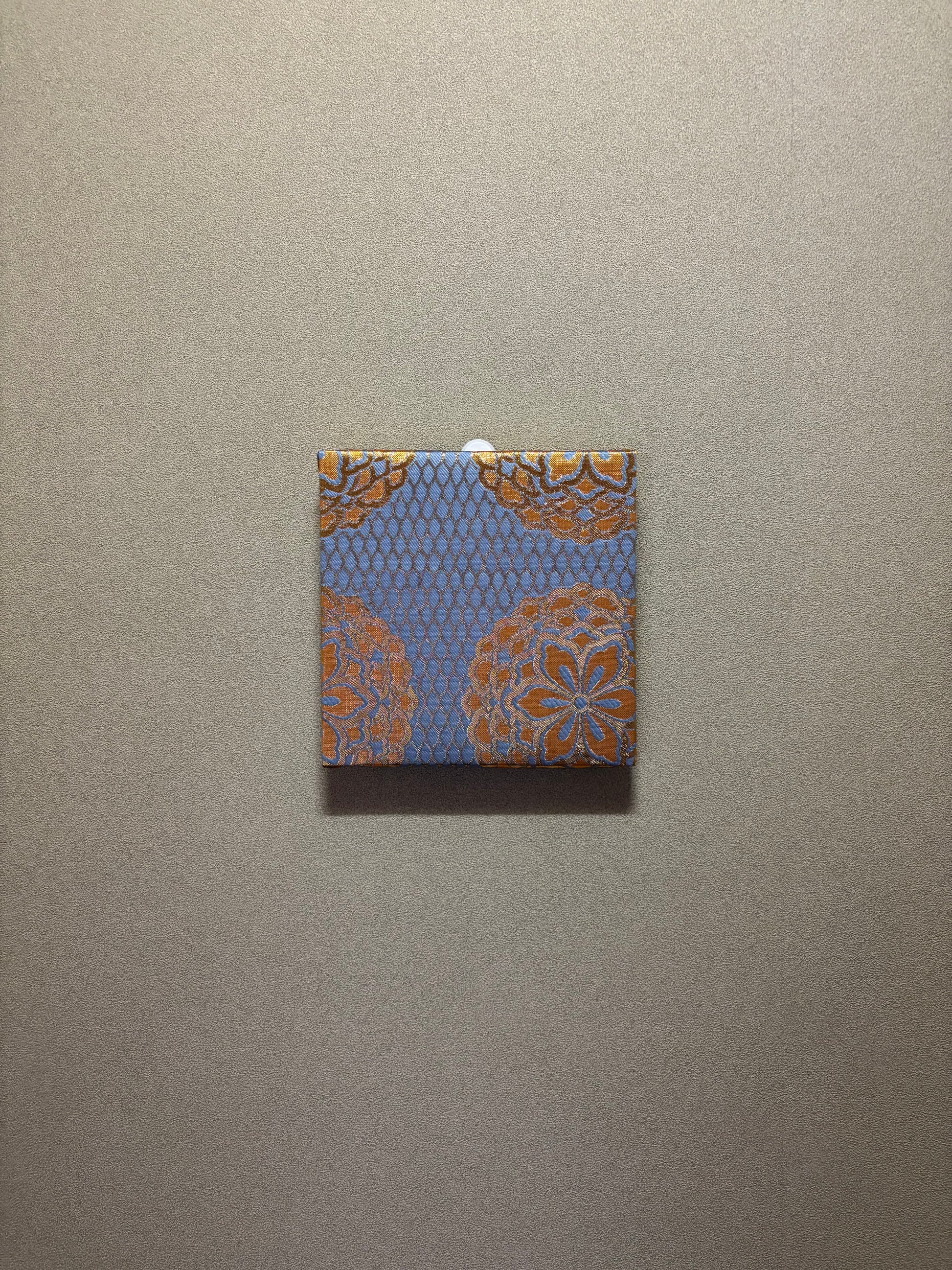 Nishijin Fabric Art Board - Vintage Kyoto Textile Wall Decor | Blue & Gold Floral Pattern