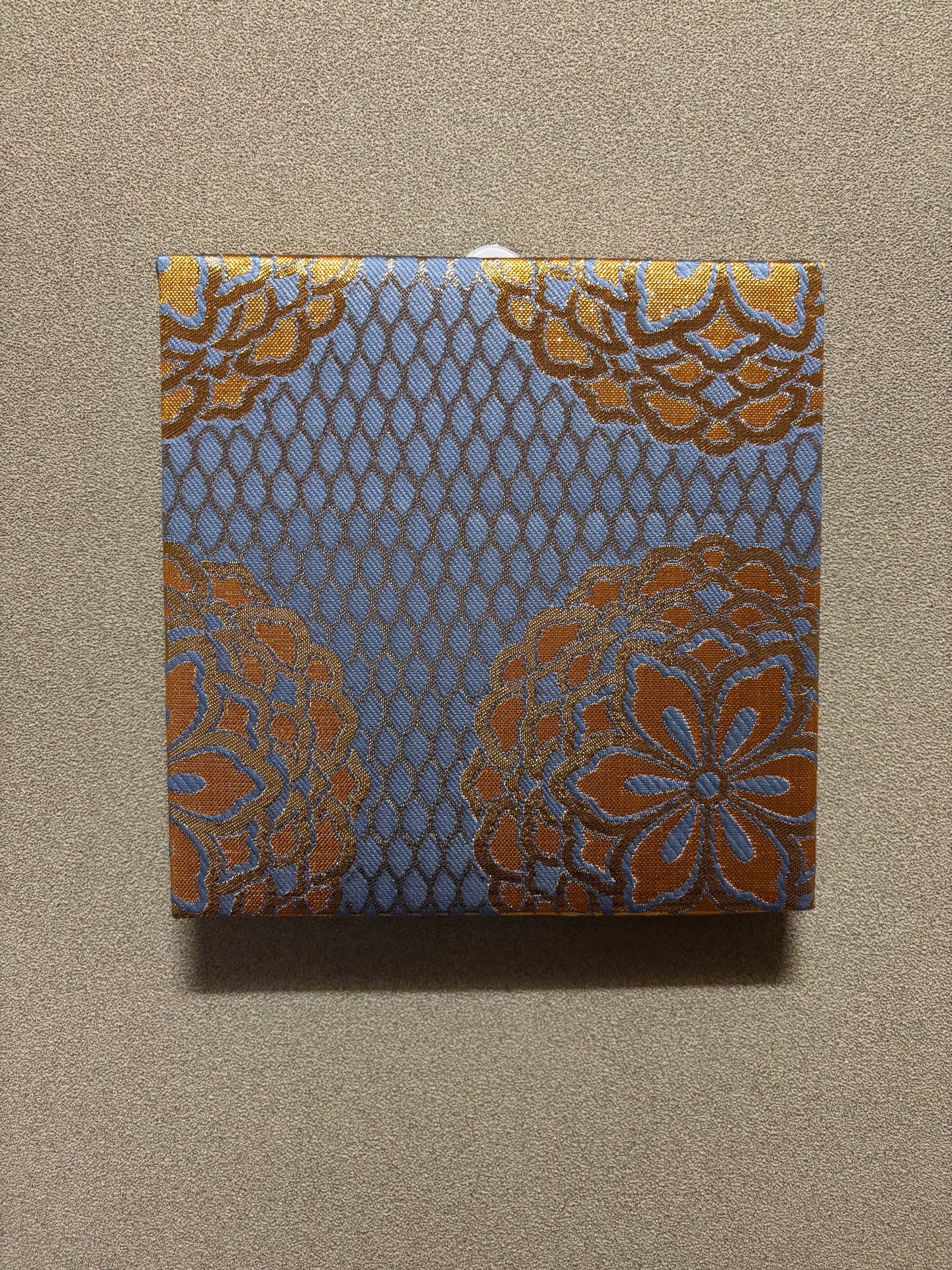 Nishijin Fabric Art Board - Vintage Kyoto Textile Wall Decor | Blue & Gold Floral Pattern (025-FB)